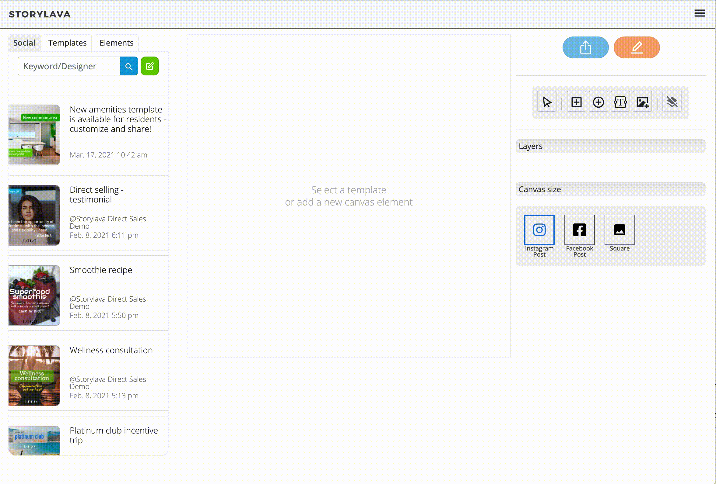 You can select a template to load using different ways, and then customize it so you can post on social media.