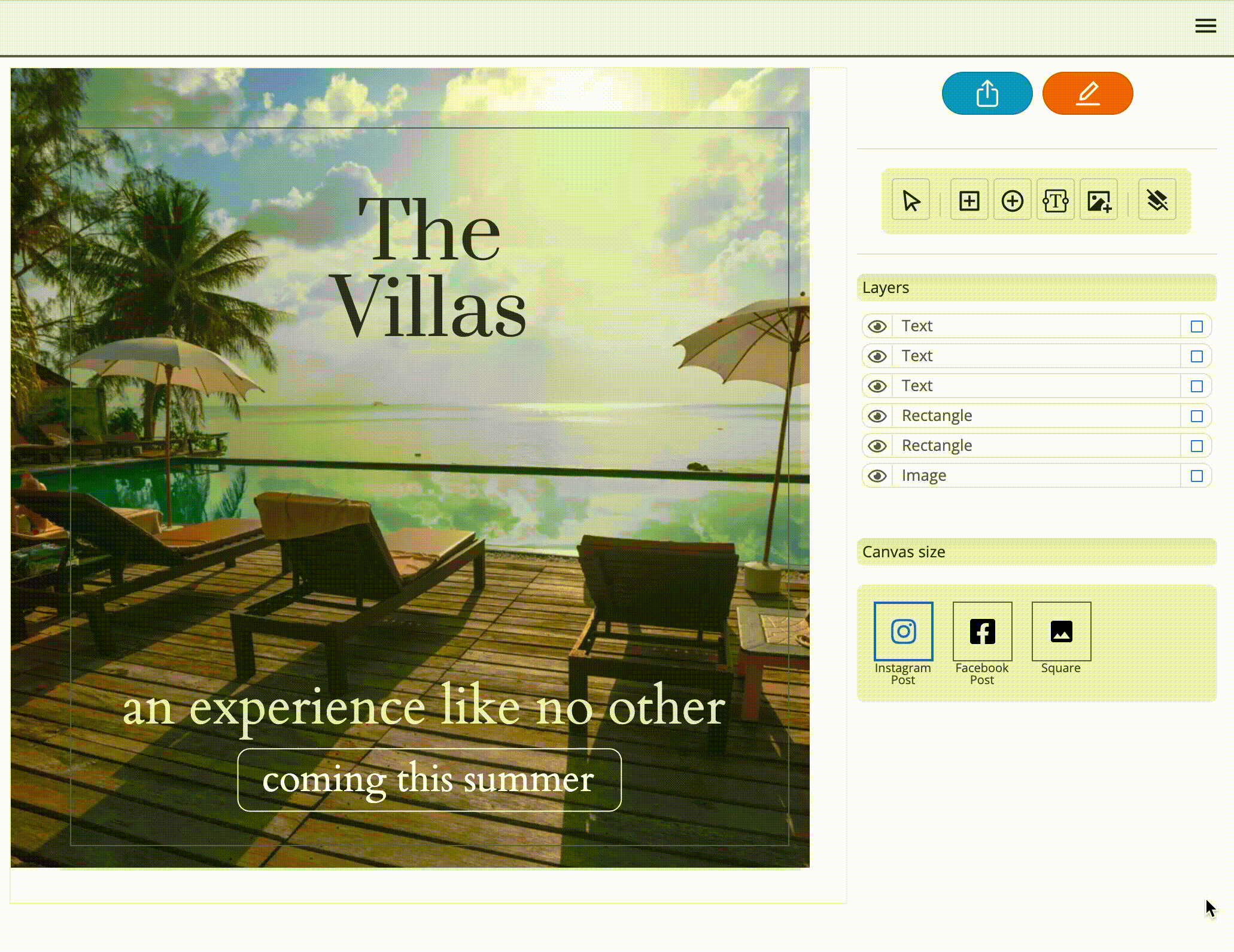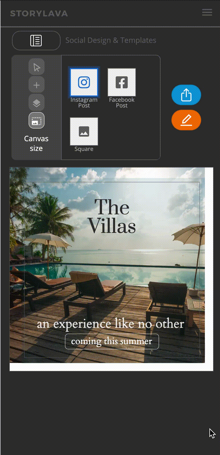 Several canvas presets are optimized to display best on common social media platforms. To size the canvas for the intended image output size, tap the preset name, such as Instagram, Facebook, or Square.